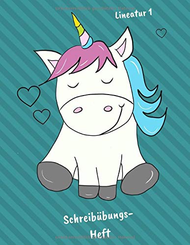 Schreibbungsheft - Lineatur 1: Schreiblernheft mit Huschen fr Erstklssler | Grundschule - Klasse 1 | Geschenkideen zum Schulanfang fr Mdchen | Motiv: Einhorn